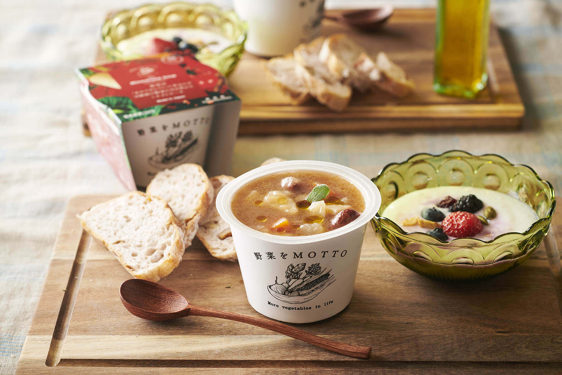 静岡産「あかでみトマト」で煮込んだ7種野菜と3種の豆が甘み豊かなミネストローネ