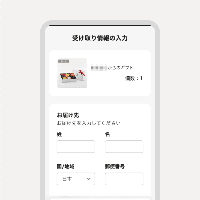 お相手は受け取ったURLから配送箇所、配送希望日を直接ご入力できます。