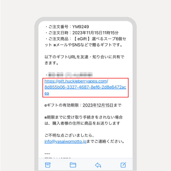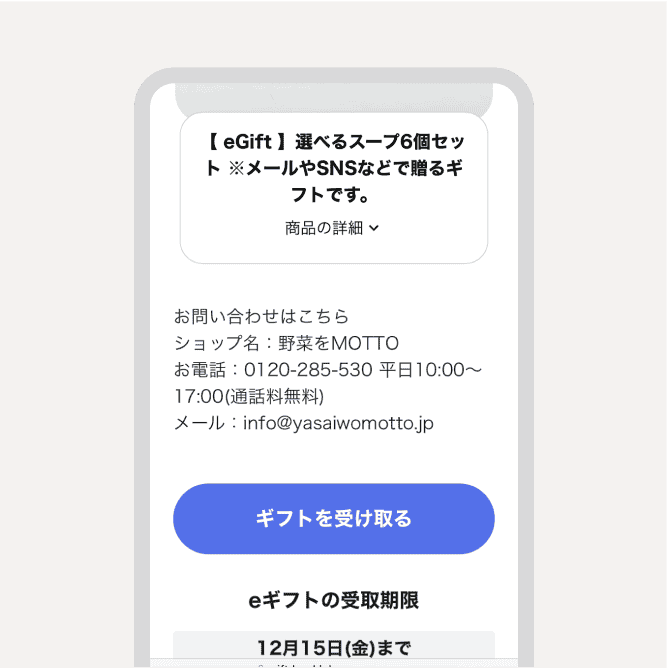 「野菜をMOTTO:ギフトURLのお知らせ」