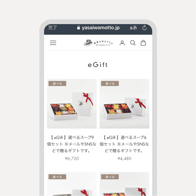 さらに野菜をMOTTOのeギフトはスープの種類も