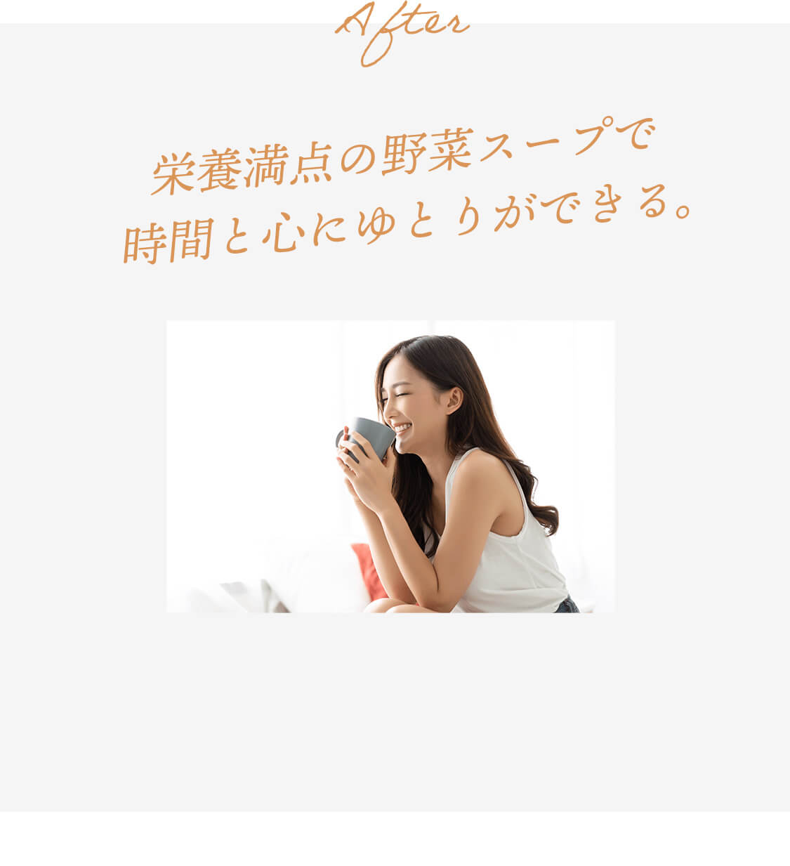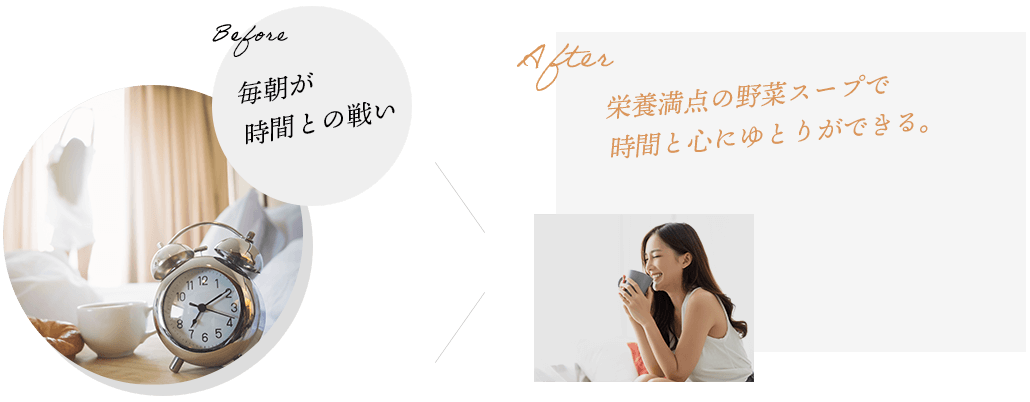 レンジカップスープがあれば、料理する時間を節約。朝の身支度に時間をつくり、ゆっくり
