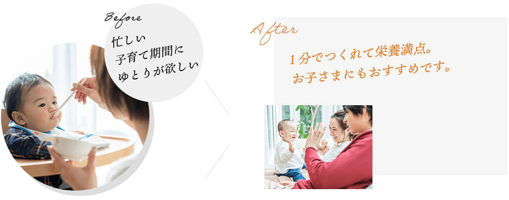 子育て中は、子どもから目を離すこともできず、なかなかゆっくりできないもの。手の込んだスープがすぐできるから、時間と手間の節約にぴったりです。