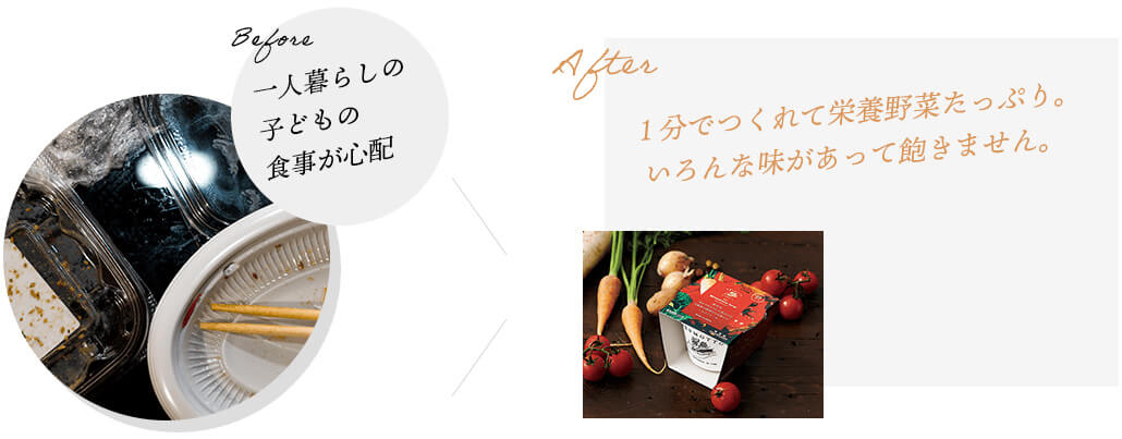 一人暮らしだと、ついつい外食が増えるもの。栄養の偏りが心配です。常温保存できるレンジカップスープなら、お子さまにも便利で喜ばれます!