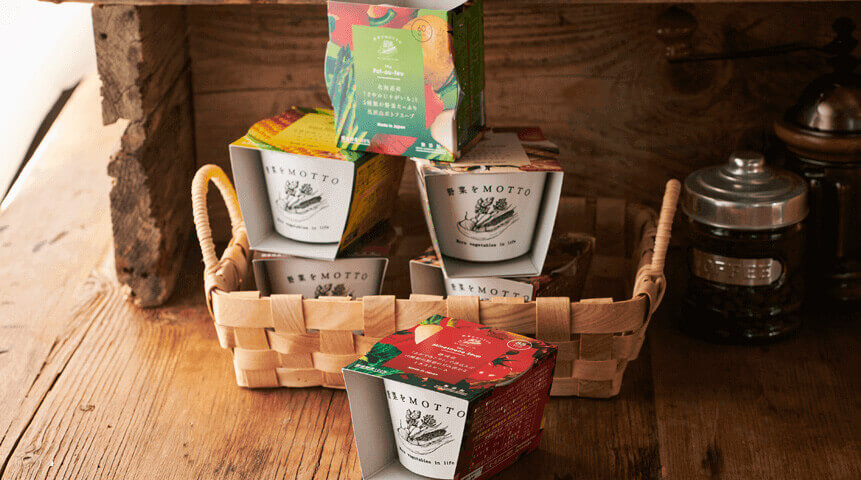 静岡県で大切に育てられた「あかでみトマト」をベースに、3種類の豆や根菜など、全部で10種類の野菜が入ったミネストローネ。植物性たんぱく質やリコピンがたっぷり。