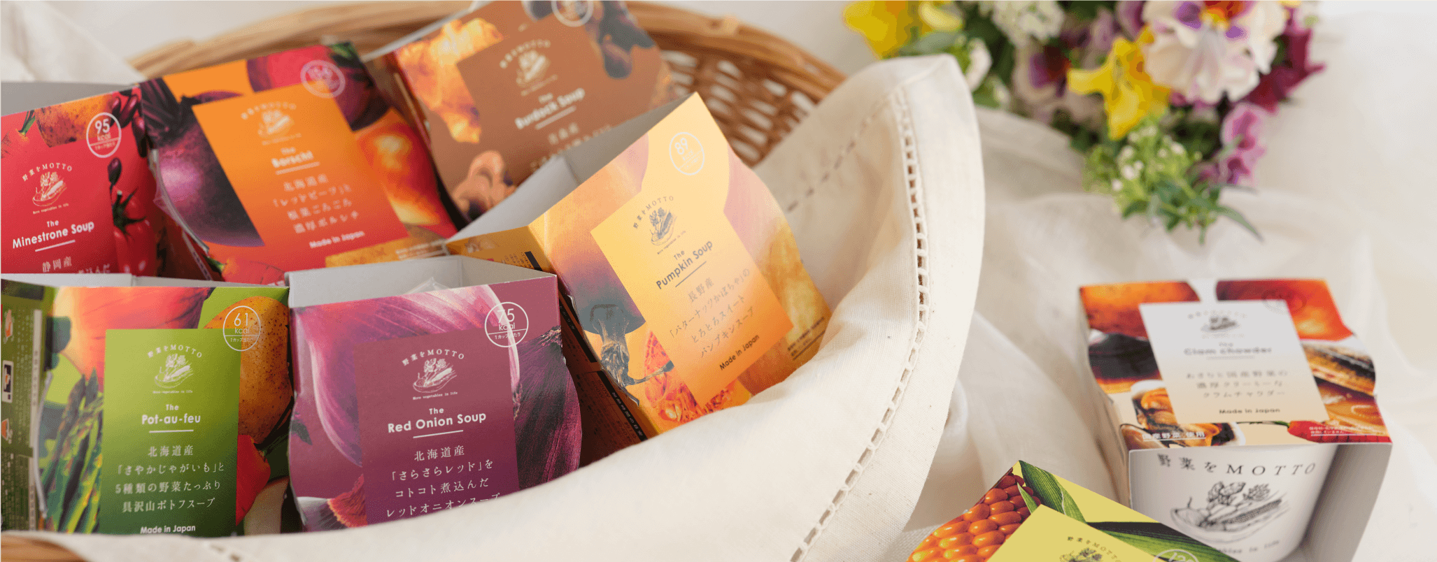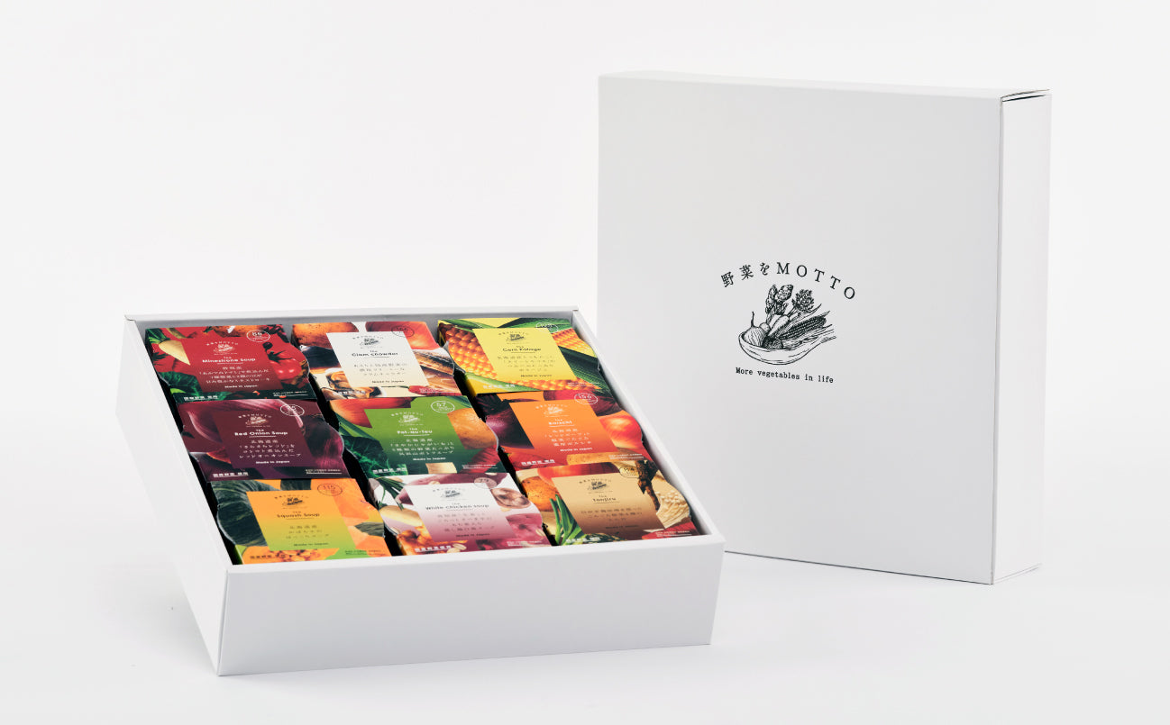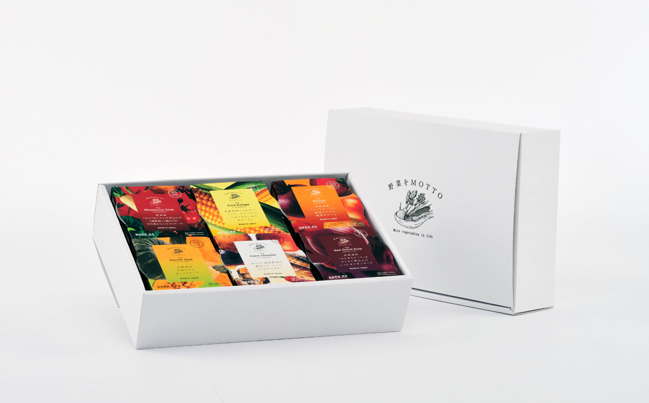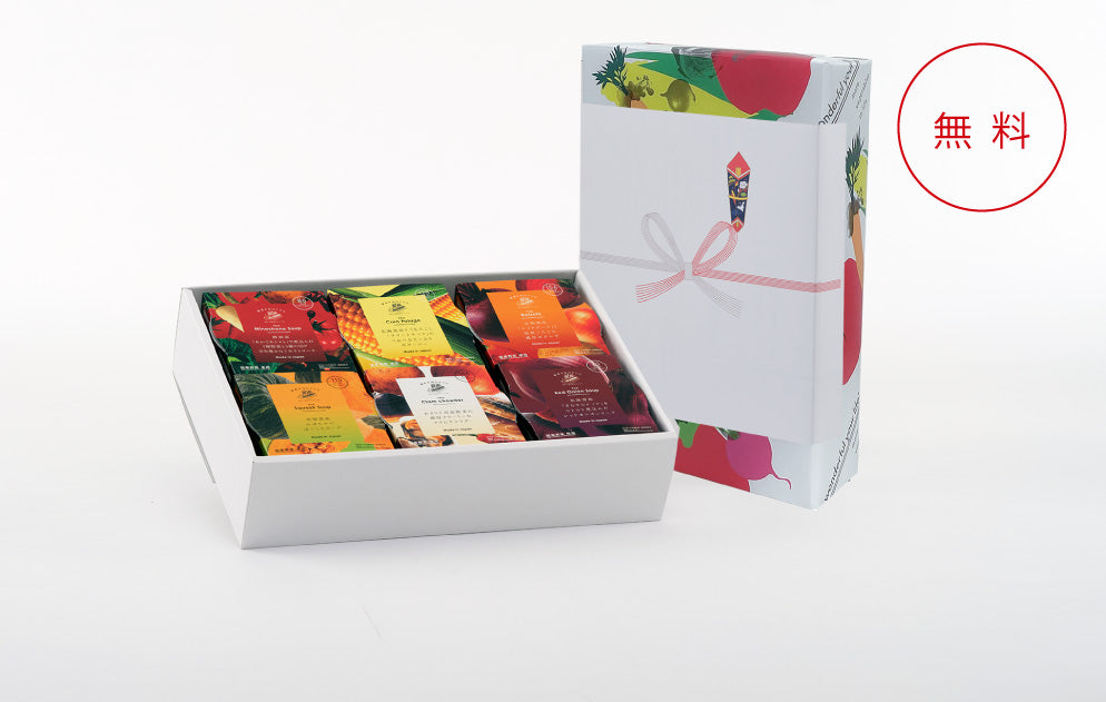 - スープは全部で10種類以上。お好きな組み合わせでギフトをおつくりすることもできます。お相手に合わせてカロリーが低いものだけやお好みのものだけなど自由に組み合わせていただくことができます。